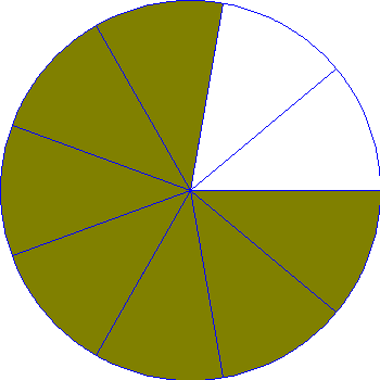 Look at the colored part of each shape. Which shape shows seven-ninths?